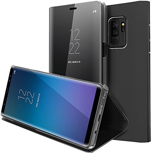 Galaxy S9 Plus Custodia, Smart Sleep / Wake Up Finestra S-View Specchio trucco Placca Placcatura Stand Caratteristica Slim Custodia protettiva Full Body Flip Cover per Samsung Galaxy S9 Plus(Nero)