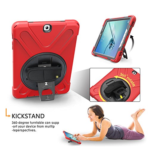 Galaxy Tab S2 20,3 cm custodia, a tre strati resistente Braecn Full Body custodia protettiva con supporto/a mano/a tracolla per 2015 Galaxy Tab S2 tablet (20,3 cm, sm-t710 T715 T713) (ROSSO)