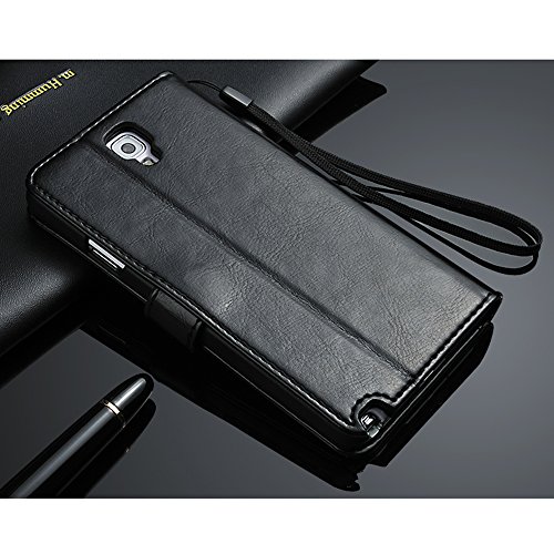 Galaxy Note3 Neo 7505 Custodia in pelle,CHENXI Vintage Premium Vera Pelle Portafoglio Flip Cover Stile Libro con Supporto Chiusura Magnetica porta carte di credito per Samsung Galaxy Note3 Neo 7505 Nero