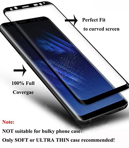 1.Bordo curvo 3D, copertura a schermo intero Vetro temprato Samsung S8, Assicurarsi di avere una vista a schermo intero e solo il caso più basso dello schermo.