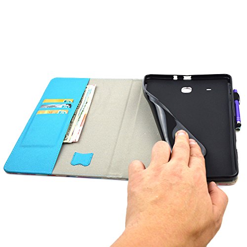 Galaxy T560 Tablet Custodia, SHANGRUN PU Pelle Cartoni di Stampa Stand Protettivo Custodia Portafoglio Magnetica Wallet Carta Flip Cellulare Supporto Tavoletta Custodia Case Cover Per Samsung Galaxy Tab E( 9.6 inch)T560 T561 Tablet SR02 Penna non Inclusa