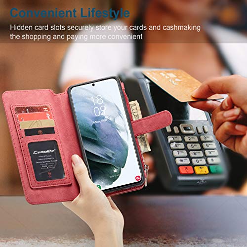Galaxy S21 Ultra Custodia a portafoglio staccabile 2 in 1 con chiusura magnetica e scomparti per carte di credito,custodia protettiva multifunzione per Samsung Galaxy S21 Ultra 5g-Rosso