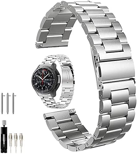 Galaxy Watch 46mm/Gear S3 Frontier/Braccialetto classico cinturino da polso in acciaio INOX massiccio per Samsung Gear S3 (metallo argento)