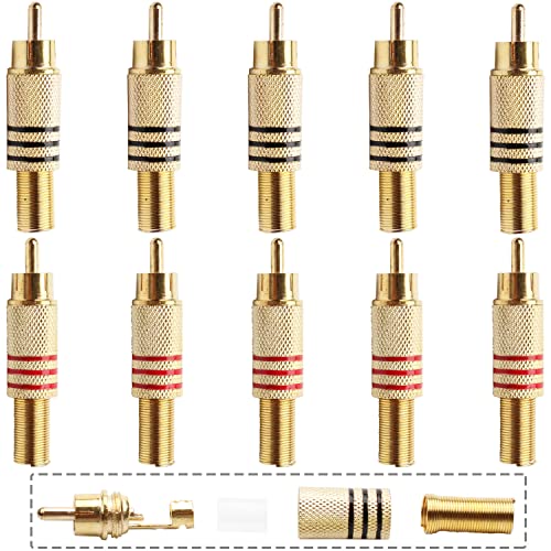 GALDOEP 10 Pezzi connettore RCA maschio,Spina audio RCA,Spina audio RCA saldatura adattatore (cerchio rosso e nero)