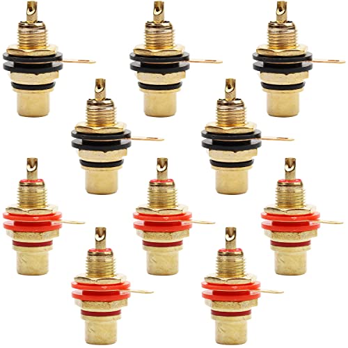 GALDOEP 10 Pezzi Presa RCA,Spina jack fono RCA placcata oro per connettore RCA terminale audio amplificatore (cerchio rosso e nero)