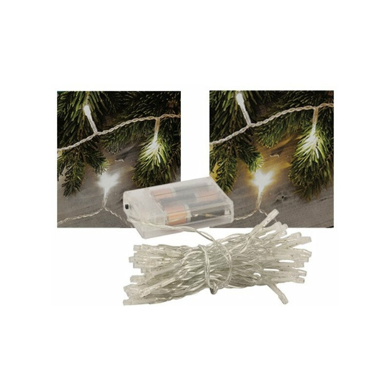 Catena luminosa a batteria perfetta per dare un tocco di intensità luminosità senza dipendere dalle prese elettriche. Ideale per illuminare vasi di vetro, lanterne, presepe... Alimentata da 3 batterie da 1.5 Volt AA ( non incluse ) Colore e Dimensioni disponibili: 50 Led - Bianco - cavo 3.5 mt 50 Led - Bianco Caldo - cavo 3.5 mt 100 Led - Bianco - cavo 7 mt 100 Led - Bianco Caldo cavo 7 mt