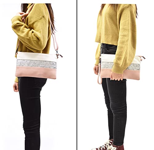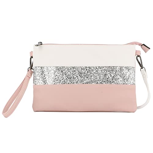 Gallantry - Borsa a Tracolla Piccola Donna Paillettes - Borsetta Messenger Crossbody Bag Strass - Borsa Mano Spalla Strisce Brillante Multicolore - PU Pelle Morbida - Elegante Moda - Rosa bianco