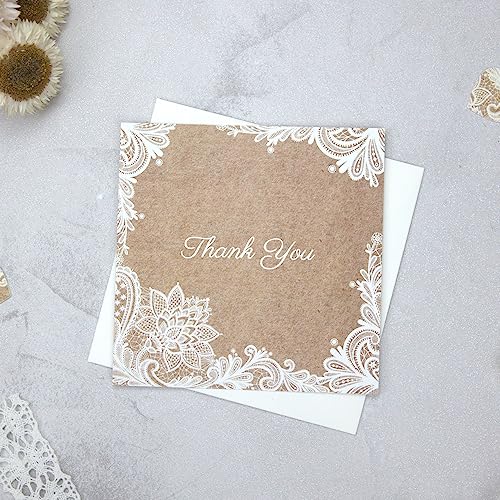 The Card Gallery - Biglietto di ringraziamento, con motivo in pizzo su carta rustica, messaggio: "Thank you" [lingua inglese: grazie], confezione da 20