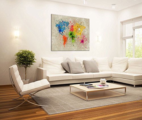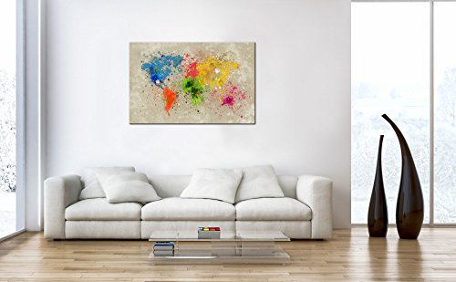 Gallery of Innovative Art - Mappa del Mondo Acqua Colore Explosion - 100x75cm - Larga Stampa su Tela per Decorazione murale - Immagine su Tela su Telaio in Legno - Arazzo Decorazione murale