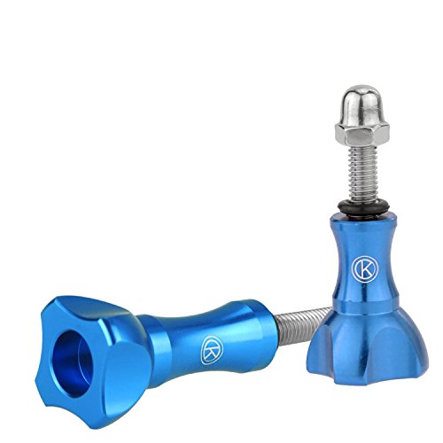 Set Viti a Galletto CamKix per GoPro - 3 Viti a Galletto in Alluminio (2 Corte, 1 Lunga) per GoPro Hero 5, 4, 3, 2, 1 / Include 1 Cordino CamKix e 1 Sblocca viti di facile utilizzo (Blu)