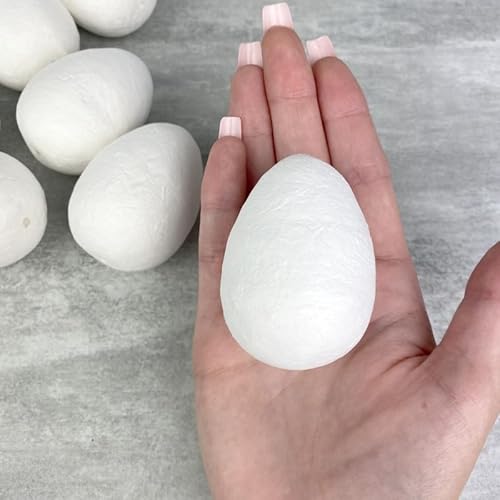 Set di 10 uova di gallina, 6 cm, in ovatta di cellulosa con foro di sospensione, dimensioni 6 x 4,3 cm, in cotone compresso