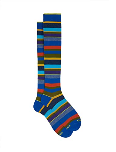 Gallo - Calze Lunghe Uomo Cotone Leggero Blu Pervinca Righe Multicolor, Blu, 40/45