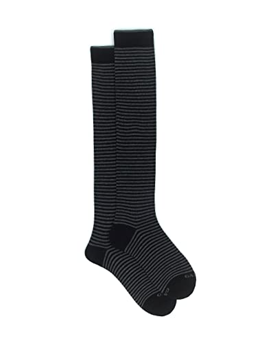 Gallo - Calze Lunghe Uomo Cotone Nero Righe Windsor Lungo nero/pirite