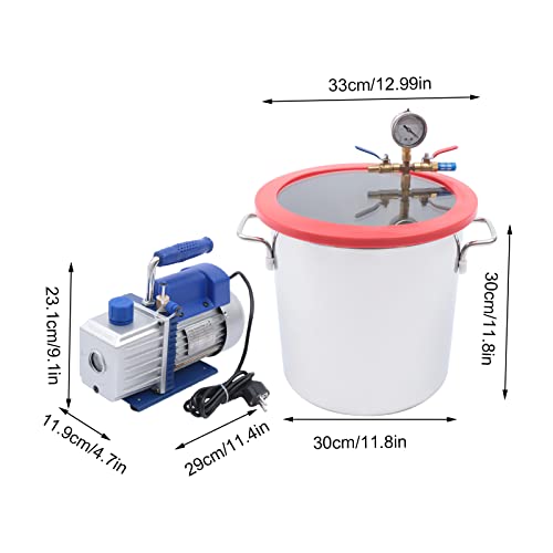 5 galloni Camera di Vuoto E 5CFM Pompa Vuoto di Raffreddamento - Attrezzature per Vuoto Pompa con Camera da 18L in Acciaio Inox Vacuum Chamber per Silicone E Resine