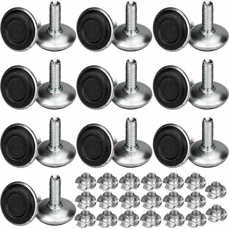 Colore: nero Materiale: ferro, plastica Dimensioni: M8 x 20 x 30 mm Contenuto della confezione: 20 x gambe, 20 x dadi 【Ampiamente usato】 Adatto per mobili, attrezzature per il fitness o attrezzature meccaniche. I piedini di livellamento vengono utilizzati nella parte inferiore dei mobili per mantenere l'equilibrio. E mantieni i tuoi mobili puliti e belli tenendoli lontani dai pavimenti umidi. 【Alta qualità】 Le gambe dei mobili sono realizzate in ferro e plastica di alta qualità. Base ispessita, robusta e stabile, può essere utilizzata a lungo. 【Proteggi il pavimento】 I piedini regolabili proteggono il pavimento dai graffi causati dalle gambe dei mobili. Riduce anche il rumore, permettendoti di spostare i mobili facilmente e silenziosamente. 【Facile da installare】 Determinare dove si desidera posizionare i piedini di livellamento e praticare un foro uguale al diametro della vite (8 mm). L'installazione è completata inserendo il dado nel foro e fissandolo.