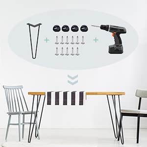 Gamba da Tavolo Two-rod Forcina Gambe Piedini, Set di 4 Gambe Tavolo, Gambe Tavolino per Mobili e Scrivania, Tavolino, Tavolo da Pranzo, in Acciaio (16 Pollice)