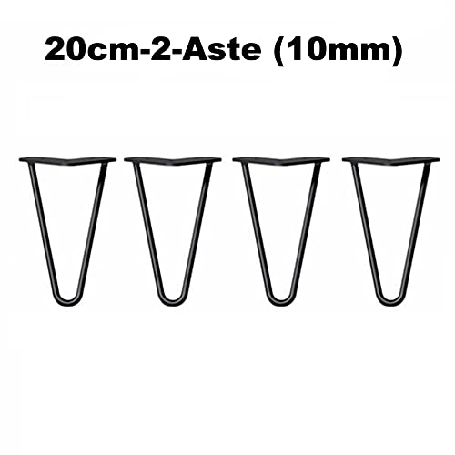 Set di 4 Gambe a Forcina Gambe per Mobili, 20cm 2-Bar Gambe da Tavolo in Metallo, 10 mm Acciaio Laminato a Freddo per Tavolino, Panca, Tavolo da Pranzo, Comodino, Nero