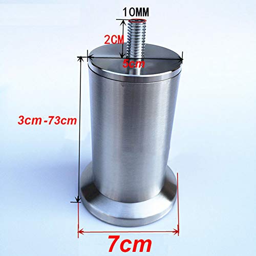 NWHJ Gambe Letto Piedi mobili Acciaio,Filetto M10,Robusto Metallo Acciaio Inossidabile, tavoli, tavolino in Vetro, Mobile TV Piedini Base Grande, Argento, Set di 4