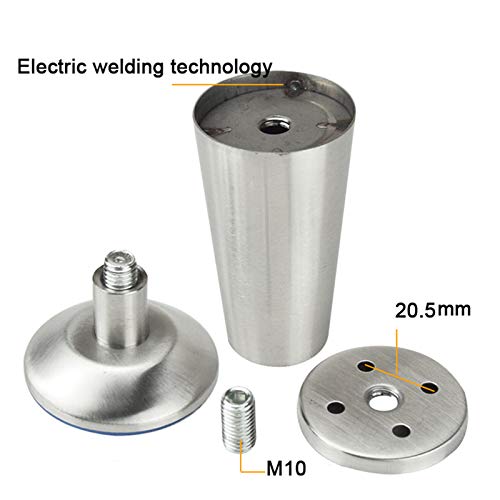 LKHG Gambe per Mobili in Acciaio Inox,Regolabili Gamba,Superficie Spazzolata, Cuscinetto in Gomma di Protezione Ambientale, Forma della Tazza alla Moda, Struttura Stabile, Carico Forte
