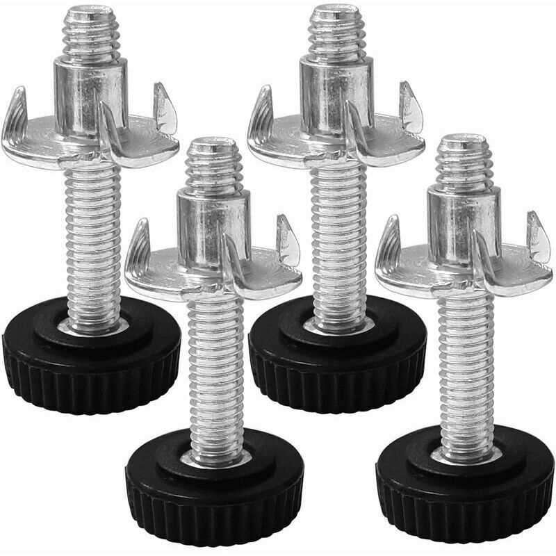Kit per gamba per mobili diametro 4mm composto da: 4x viti a testa in plastica (diametro testa 20mm) e asta in acciaio che assicurano il collegamento al pavimento + 4x dadi ad artiglio che assicurano il fissaggio al mobile / Questo kit è completo e pronto all'uso usato senza parti aggiuntive, è stato dimensionato per un facile utilizzo e un'ottima resistenza nel tempo