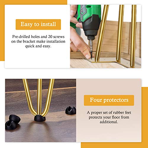 Set di gambe per mobili da 4 pezzi: Design semplice a 2/3 aste, lunghezza delle gambe disponibile 10 cm-75 cm, spessore 10 mm, regalo gratuito: 16 viti di fissaggio standard 4 protezioni per i piedi.