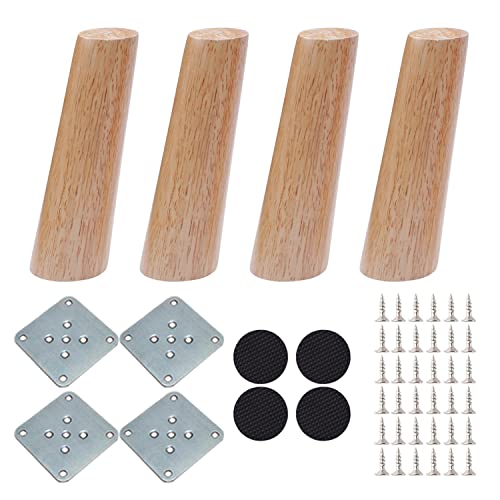 Gambe per Mobili in Legno 4Pcs Gambe di Divano Tavoli Coniche Diritto in Legno con Piastra di Montaggio e viti per Divano TV Armadio Letto Tavolo da Pranzo (150mm Altezza)