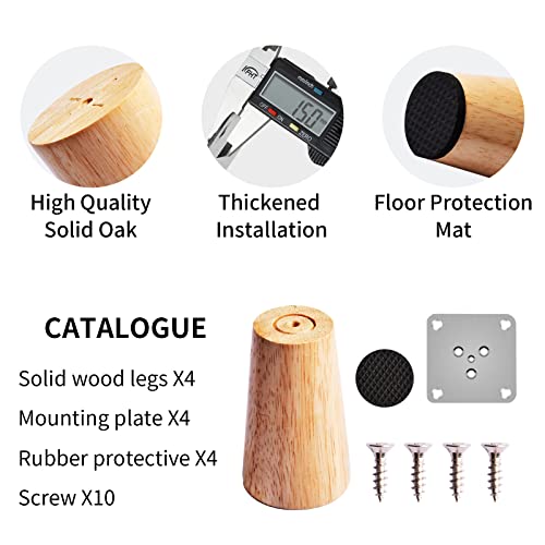 【Facile da installare】 Confezionato con 4 gambe in legno (8 cm), 4 piastre di montaggio, 40 viti, 4 cuscinetti in fibra di feltro. basta semplicemente installare e serrare le viti da utilizzare. È molto facile sostituire la vecchia gamba del mobile