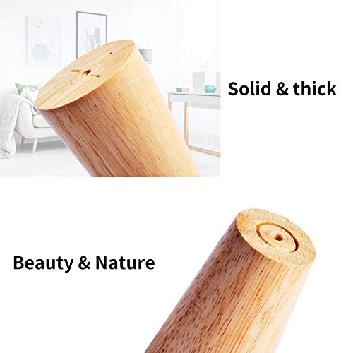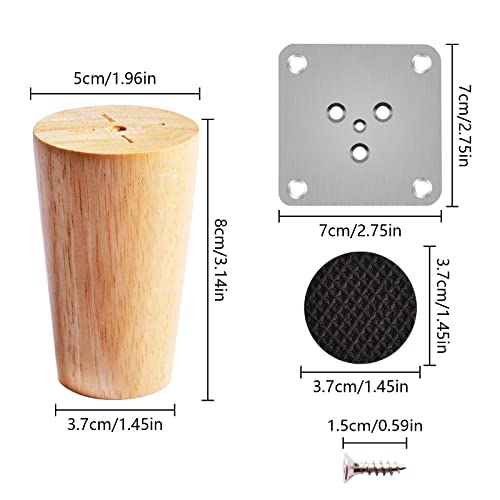 4pcs Gambe Per Mobili in Legno, 8cm Piedini Per Mobili, Piedini in Legno Grezzo, Cono Dritto Piedini Ricambio Mobili con 4 Cuscinetti Fibra Feltro,Piastre Montaggio e Viti Per Comò Tavolo Del Divano