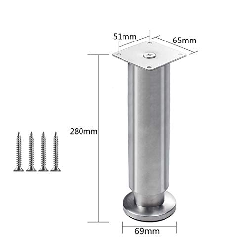4 Gambe per mobili regolabili Piedini per mobili in acciaio inox Piedi del mobile Gambe di supporto in metallo Gambe per divani Materiale spesso Fissaggi per mobili,Argento(28cm)