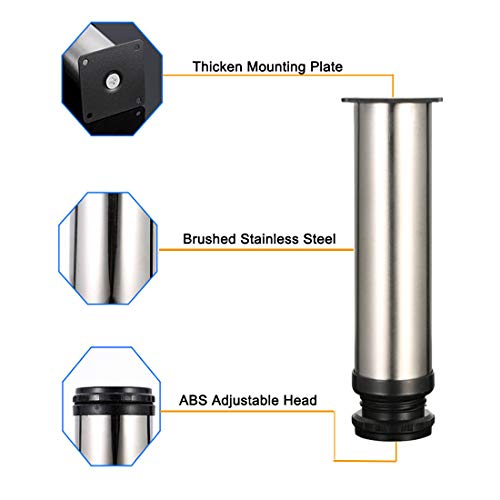 4 pz gambe regolabili Altezza 200mm Gambe dell'armadio addensate Gambe da tavolo Gambe per mobili, Acciaio inossidabile spazzolato, Altezza regolabile 0-15mm Vieni con viti in acciaio inossidabile