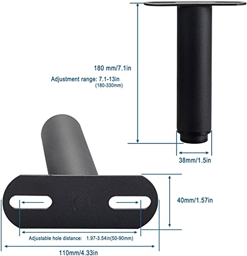 Gambe regolabili in metallo, gambe di supporto per mobili, gambe retrattili e resistenti, per letto centrale, gambe di sostegno, adatte per armadietti, divani letto, telaio di ricambio 4 pezzo (nero)