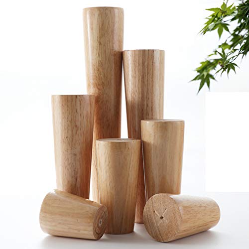 Set di 4 Gambe di Supporto per Mobili Rotondi,Gamba dell'armadio da Cucina in Legno Massello Obliquo,Piede Conici del Divano,Piedi da Tavolo in Legno di Gomma,per Sedia/Tavolino/Letto/Comò(25cm)