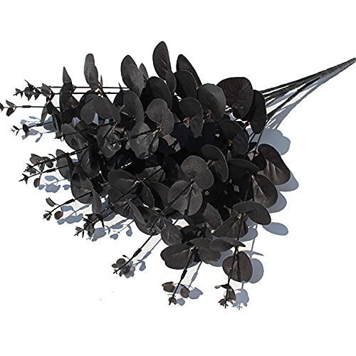 ASSR - Gambi artificiali di eucalipto con foglie di eucalipto nero finto bouquet di eucalipto con 4 steli principali, cespuglio di foglie di dollaro, per casa, matrimonio