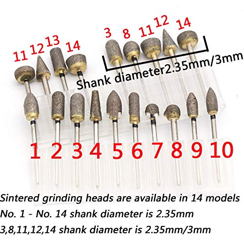 1X 2,35 / 3mm Gambo Durevole Frese diamantate Testa abrasiva Utensili rotanti per intaglio Abrasivo sinterizzato per punte da trapano per pelatura di giada, n. 3 x 3,0 mm