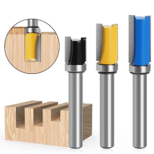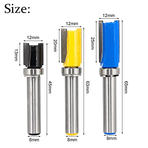 8mm Gambo Fresa a Taglienti Diritti 3 pezzi Frese Legno Fresa per Scanalare Rifilare Fresatrice Gambo per Legno, Plastica e Compensato