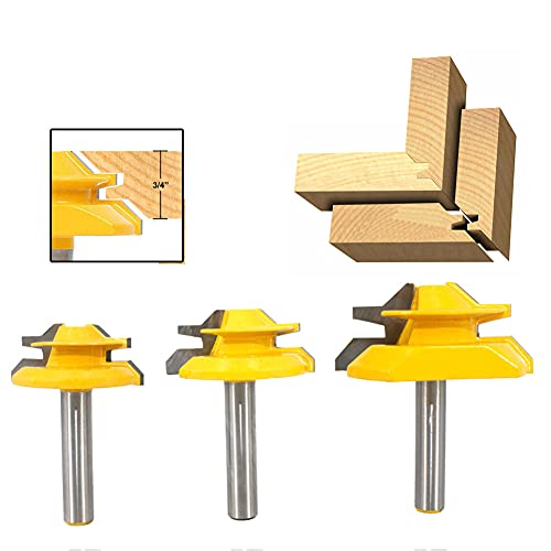 Set di punte per fresa a 45° per unire tavole a 90°, adatte per pannelli di densità, legno massello, MDF, truciolato, stecche, ecc.