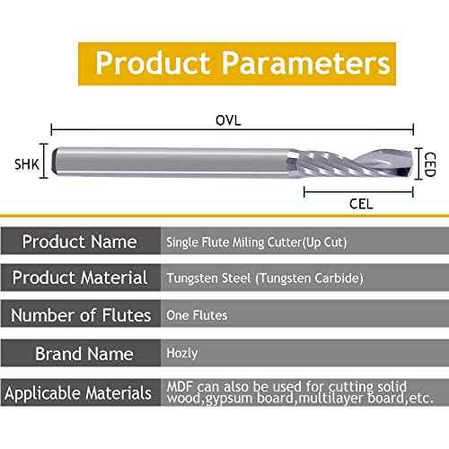 2. Taglio alto, piano piano con singolo flauto, materiale: lega di acciaio al tungsteno utilizzata per intagliare, tagliare, scanalare, fresare, tagliare cavi in materiali come legno duro, pannelli a media densità, nylon, resina, ABS, acrilico, PVC, MDF, ecc
