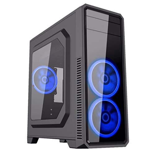 GAMEMAX G561 Black Case ATX Middle Tower per PC Desktop da Gaming 0.5MM SPCC Front Plexiglass 3*Fan 15 LED Blu 3*USB 3.0/2.0 Pannello Laterale Half Plexiglass
