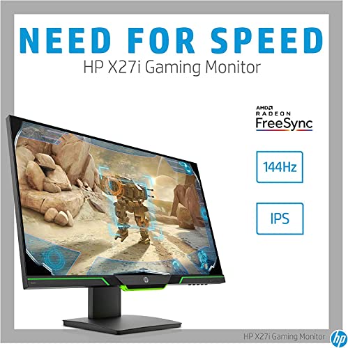HP - Gaming x27i Monitor 27” QHD 2560 x 1440 a 144 Hz, IPS, Antiriflesso, Tempo risposta 4 ms, AMD FreeSync, Regolazione Pivoting Inclinazione e Altezza, Comandi su schermo, DisplayPort, HDMI, Nero