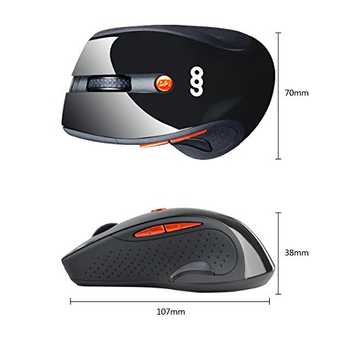 Coo 2.4 GHz 1600 DPI Gaming Mouse Wireless Mouse, 6 tasti mouse ottico con ricevitore USB per PC Laptop iMac MacBook Microsoft pro ecc. nero nero