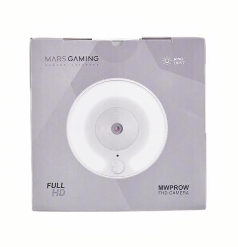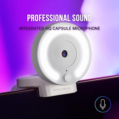 Mars Gaming MWPROW Bianco, Webcam Full HD, Ottica a 90°, Anello di Illuminazione, Microfono HQ
