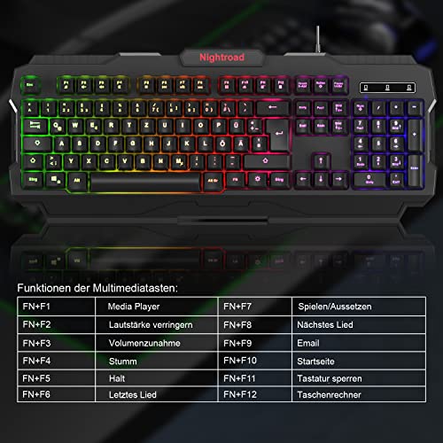 Gaming tastiera e mouse Combo arcobaleno retroilluminato Gaming tastiera sette colori respirazione retroilluminato tastiera mouse USB Wired Gaming Mouse set (versione tedesca)