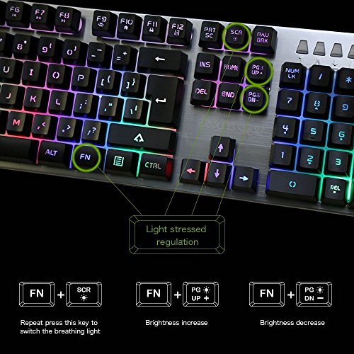 design unico Backlit, due modalità Backlit, Stable Rainbow e Rainbow Circular respirazione modalità. Retroilluminazione luminosità può passare tra alte, medie e basse acustica della luce. Facile da usare di notte e risparmio energetico.