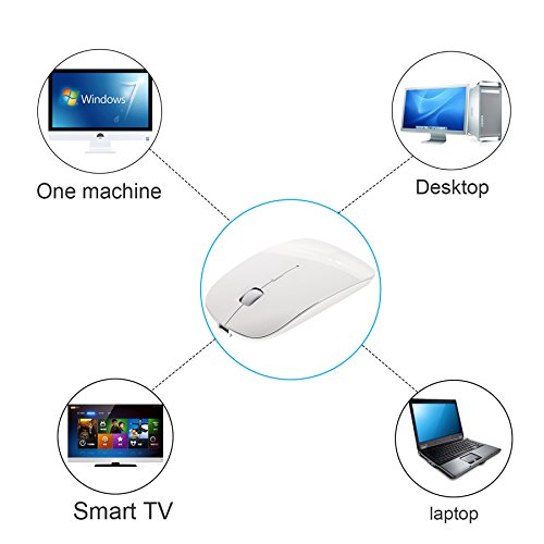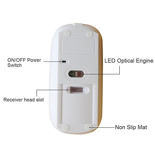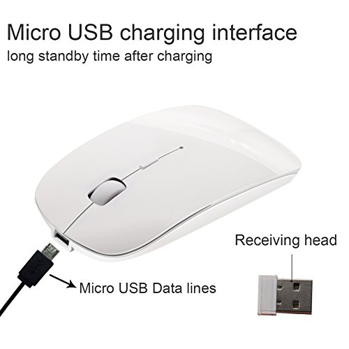 Gaming Wireless USB Mouse per Laptop PC di Tsmine. Piano Lacquer White Rechargable 2.4G Wireless Mouse