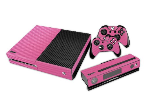 Gaminger Set di Adesivi per Xbox One + 2 Joypad + Kinect 2.0 - Trama a Nido d'Ape Rosa