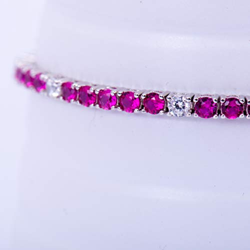 Remo Gammella Bracciale Uomo Donna Tennis in Argento 925 con Zirconi a taglio brillante da 3 mm. Lunghezza 19.5 cm (Rosso Rubino/Bianco)