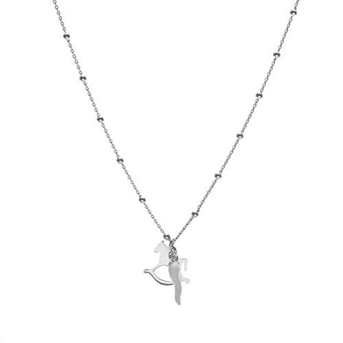 Remo Gammella Collana Donna Cornetto Portafortuna e Cavalluccio a Dondolo Argento 925 bagnato in Oro Bianco, collana con portafortuna pendente. Lunghezza 42-45 cm (Bianco)