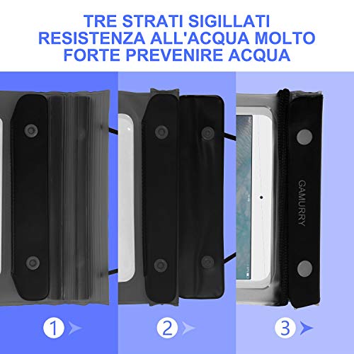 GARANZIA DI 30 GIORNI: 30-giorni No cavilli ritorno denaro Garantito per GAMMURY custodia impermeabile con cinghia strap al braccio, cordino e istruzioni, consegna veloce.