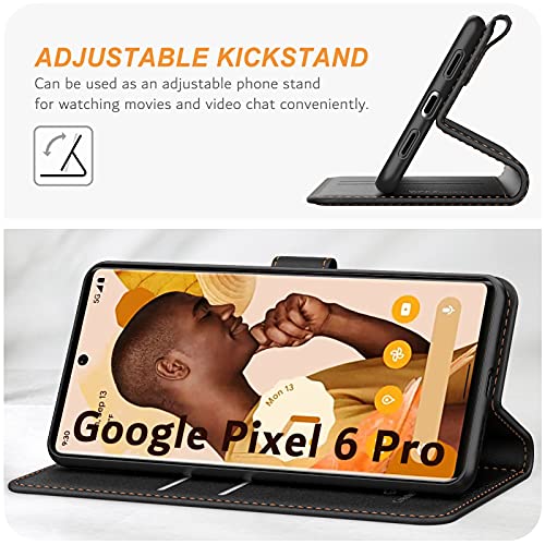Ganbary Cover compatibile con Google Pixel 6 Pro, Premium Pelle PU Portafoglio Flip Libro Libretto Custodia per Google Pixel 6 Pro [Protezione Completa] [Slot per Scheda] [Funzione di Supporto], Nero