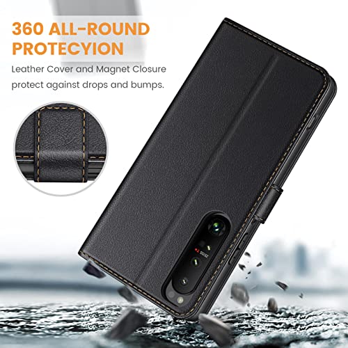 Ganbary Cover compatibile con Sony Xperia 1 IV, Premium Pelle PU Portafoglio Flip Libro Libretto Custodia per Sony Xperia 1 IV [Protezione Completa] [Slot per Scheda] [Funzione di Supporto], Nero